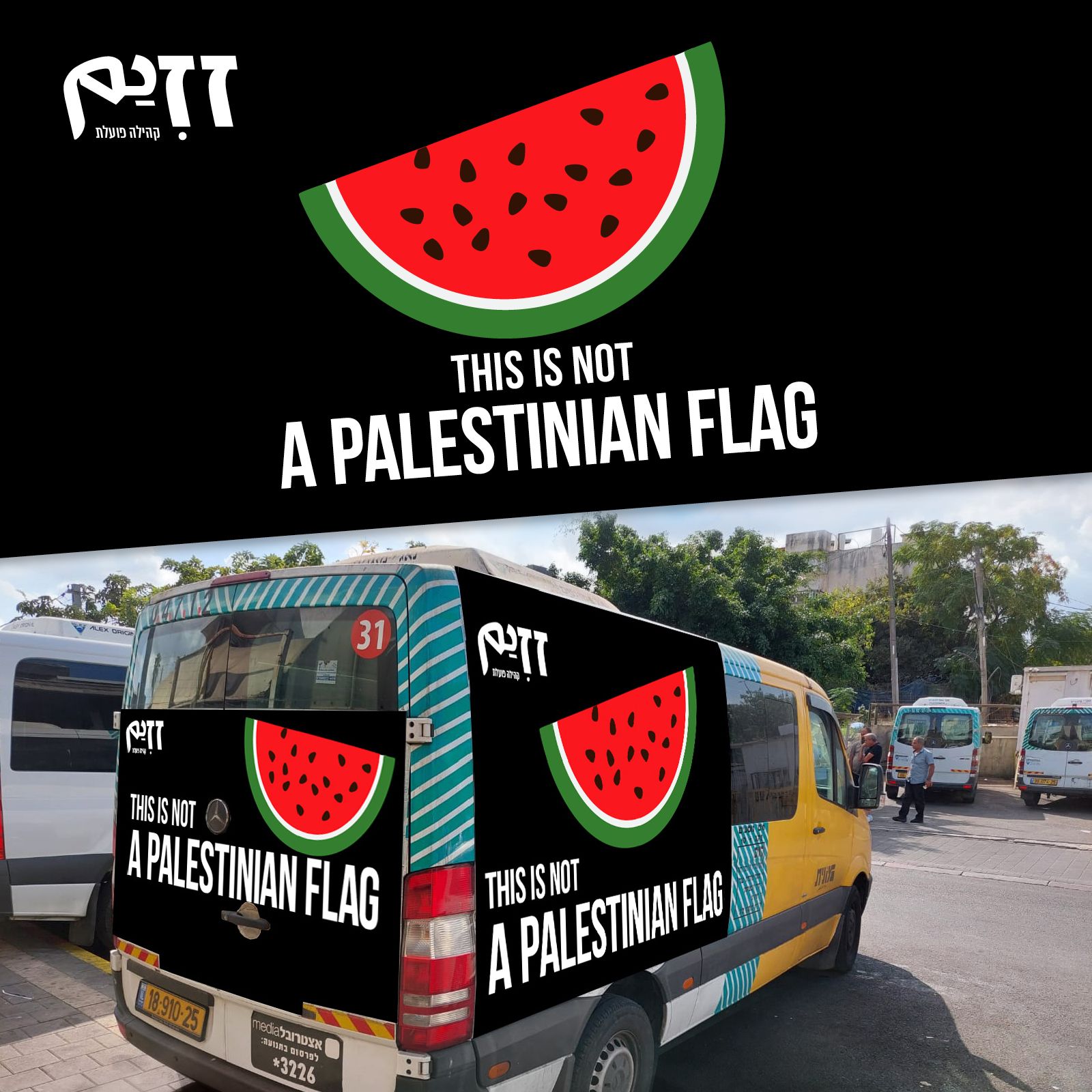今年6月,組織Zazim為了抗議巴勒斯坦國旗遭政府沒收,在特拉維夫的多輛計程車貼上西瓜圖片,並寫道:「這不是巴勒斯坦國旗。」