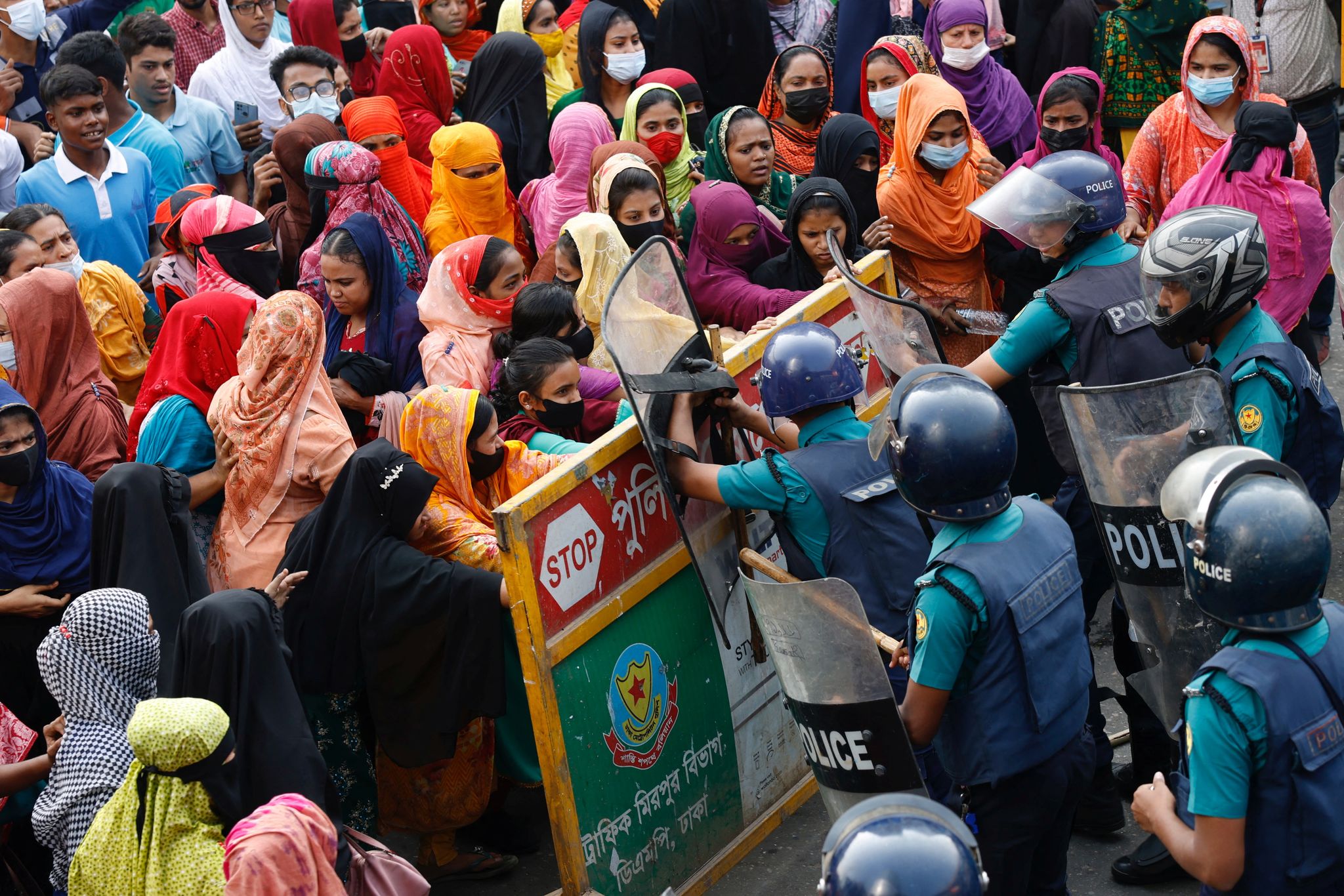 為時數週的抗議活動中,許多工人走上街頭,在高速公路上遊行示威,還有至少有70間成衣工廠遭工人洗劫。工人與警方爆發激烈衝突,警方表示,由於工人試圖封鎖道路,且向警方投擲磚塊和石頭,還在街道上點火,「我們不得不發射催淚彈、橡皮子彈來驅散他們。」