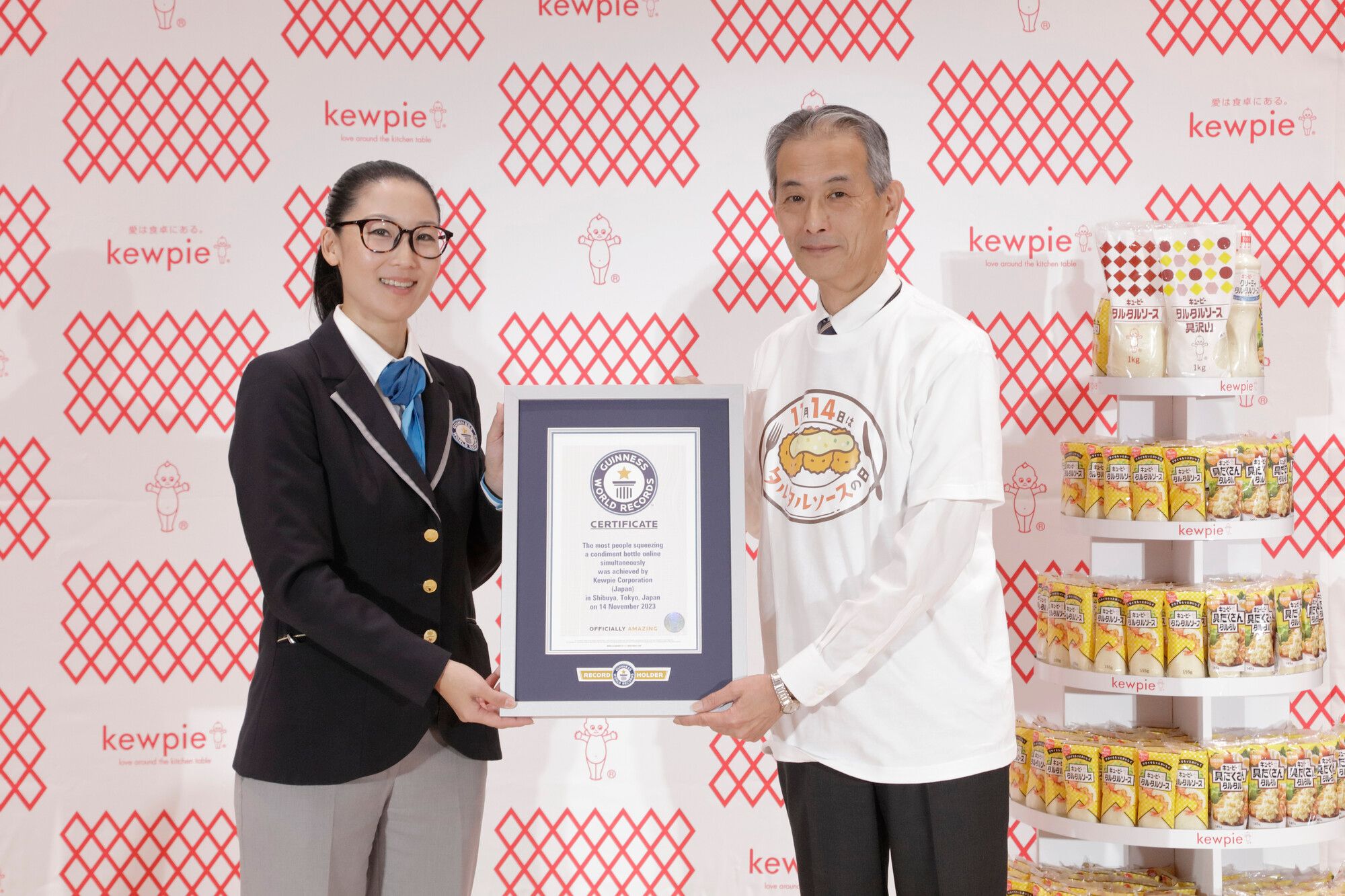這項由丘比公司組織的活動,經過金氏世界紀錄官方判定,拿下「最多人同時在線上擠壓醬料瓶」的紀錄。根據日本媒體報導,丘比公司原本想申請「最多人同時在線上將丘比塔塔醬擠在炸牡蠣上」,但是由於項目內容太過細瑣,最終被金氏世界紀錄官方擴大為同時擠壓醬料瓶。