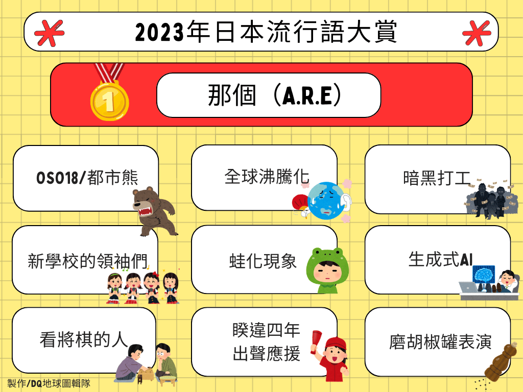 由日本出版社自由國民社主辦,票選出反映今年日本社會現象、引發話題流行語的「新語・流行語大賞」,於本月1日公布2023年的獲獎名單。