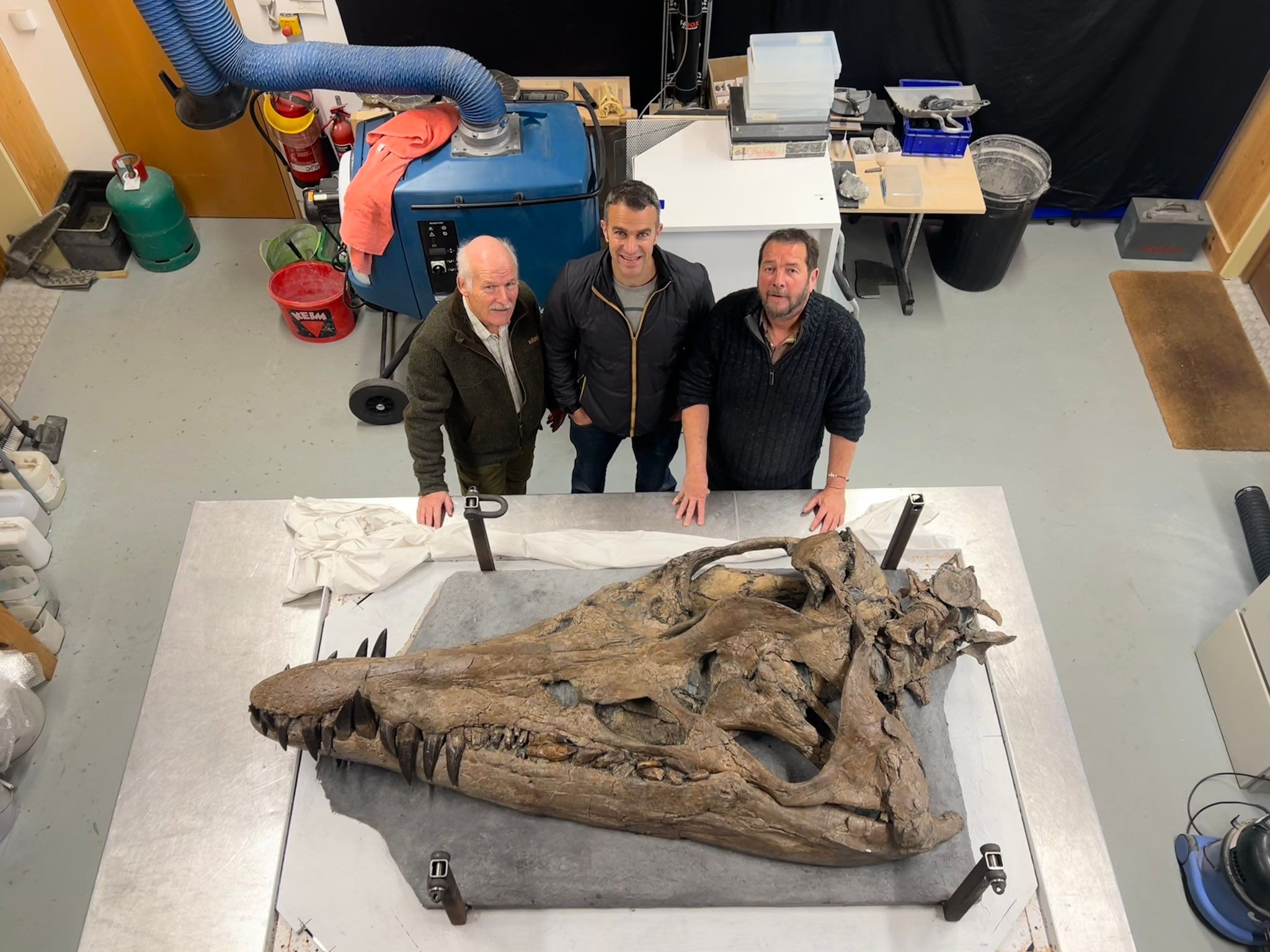 This skull belongs to a pliosaur, a ferocious marine reptile that terrorised the oceans 150 million years ago. It was found in a cliff along the UK's Jurassic Coast.This "spectacular" find is giving new insights into this ancient predator🎧 https://t.co/7QVm8PR04F pic.twitter.com/yP6S3GVIyE