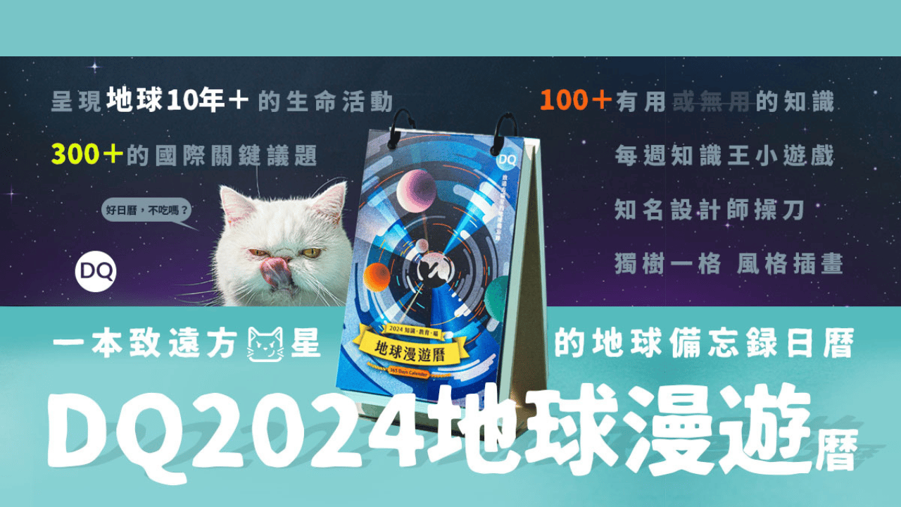 鏟屎官們為了這本日曆傾盡洪荒之力,本喵是看在眼裡的!集結DQ十餘年報導精華,豐富呈現:地球10年+的生命活動、300+的國際關鍵議題、100+有用(或無用)的知識/每週知識王小遊戲,這般宏觀可讀、兼具趣味與教育意義的優秀作品,可謂宇宙少見。