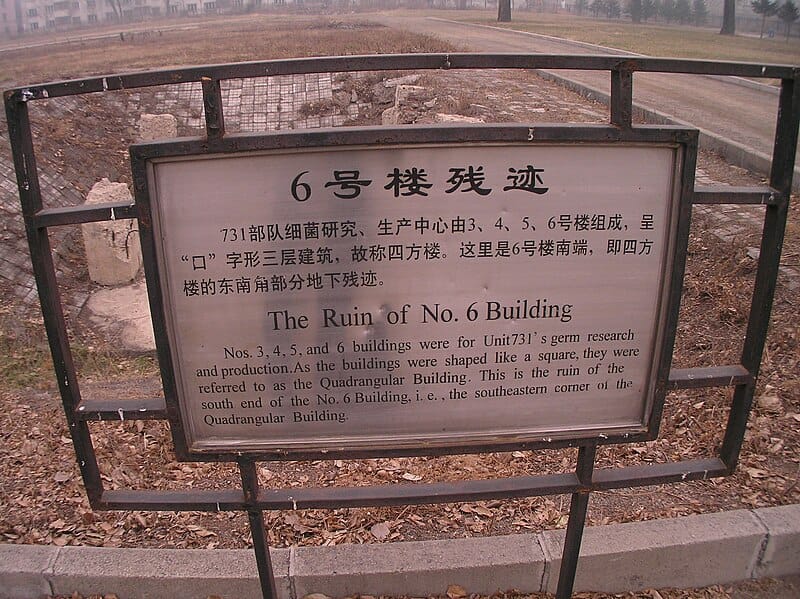 731部隊所設立的研究建築,包含了實驗室、監獄,以及各式培養鼠疫、傷寒、霍亂等工廠。而在這裡進行人體實驗的,大多數都是日本從頂尖大學徵召入隊的學者。