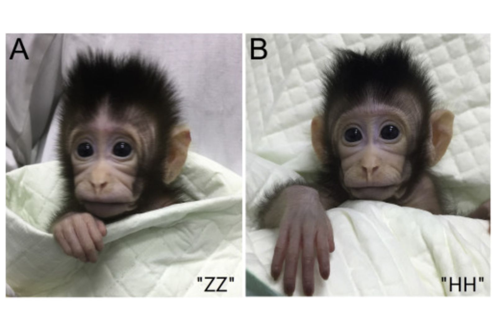 2018年,中科院團隊成功複製出的長尾獼猴「中中」與「華華」。