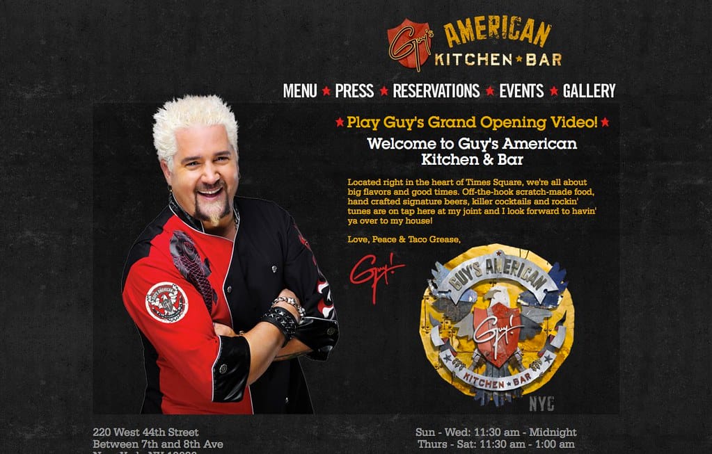 圖為知名電視主持人蓋菲里(Guy Fieri)在紐約開設的Guy's American Kitchen & Bar的廣告。
