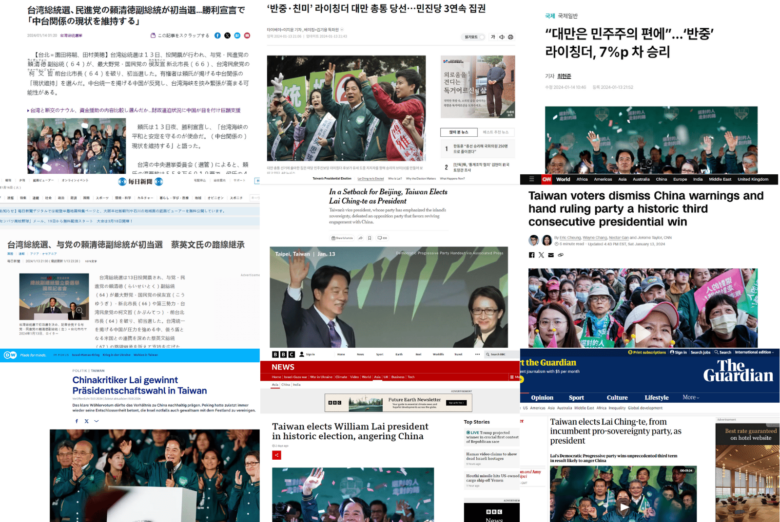 根據外交部統計,1月13日舉行的台灣大選,共有超過來自30國、150間媒體的記者前來採訪;選舉結果一確定,包括《CNN》、《紐約時報》、《衛報》等多間國際媒體,都在第一時間發布快訊,向世界宣布台灣大選的結果。
