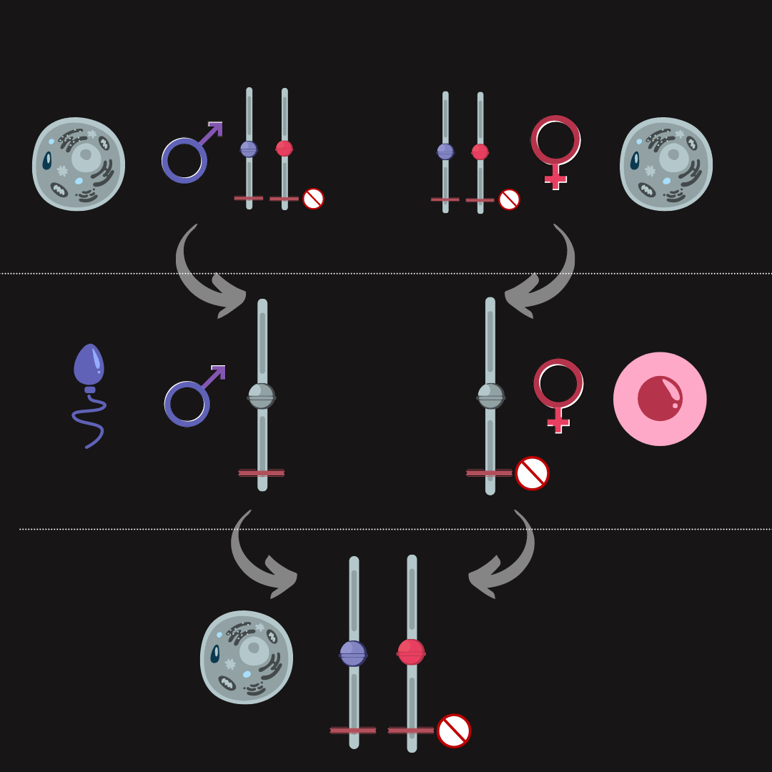 換句話說,基因銘印就像是在基因上蓋一個印章,告訴細胞「這個基因不必表現喔」。如果來自爸爸的基因上有印章,特徵就會取決於來自媽媽的基因,反之亦然。