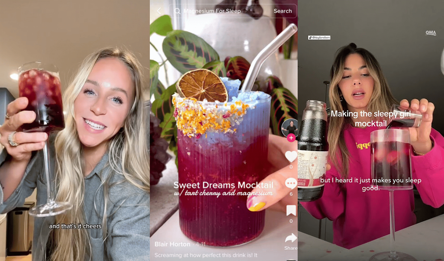 最近抖音(TikTok)流傳「瞌睡女孩」(Sleepy Girl)無酒精調酒,據說可幫助入睡並有較佳睡眠品質。如果抖音搜尋「瞌睡女孩無酒精調酒」(sleepy girl mocktail),會看到許多穿著休閒的年輕女性調製飲料的短片,她們多半宣稱喝了這杯特調飲料後就快速入睡,且一覺到天亮。