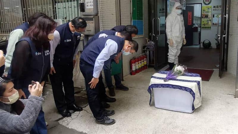 2023年3月,六福村動物園一隻狒狒脫逃至桃園,最後遭獵人開槍打死。圖為桃園農業局人員,列隊向狒狒遺體鞠躬。