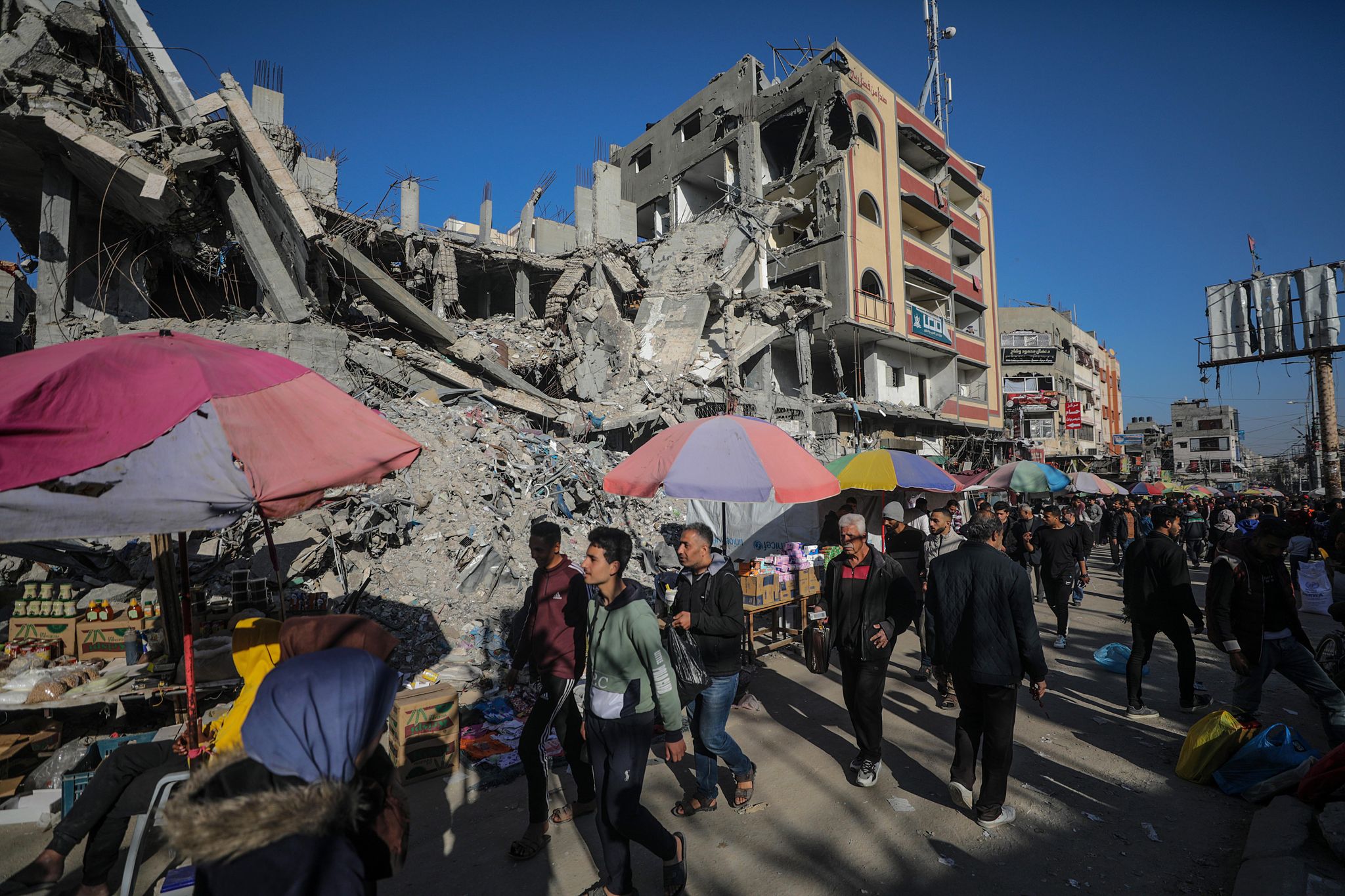 齋戒月的第一天,加薩地區的巴勒斯坦人沿著廢棄建築物設立市集。