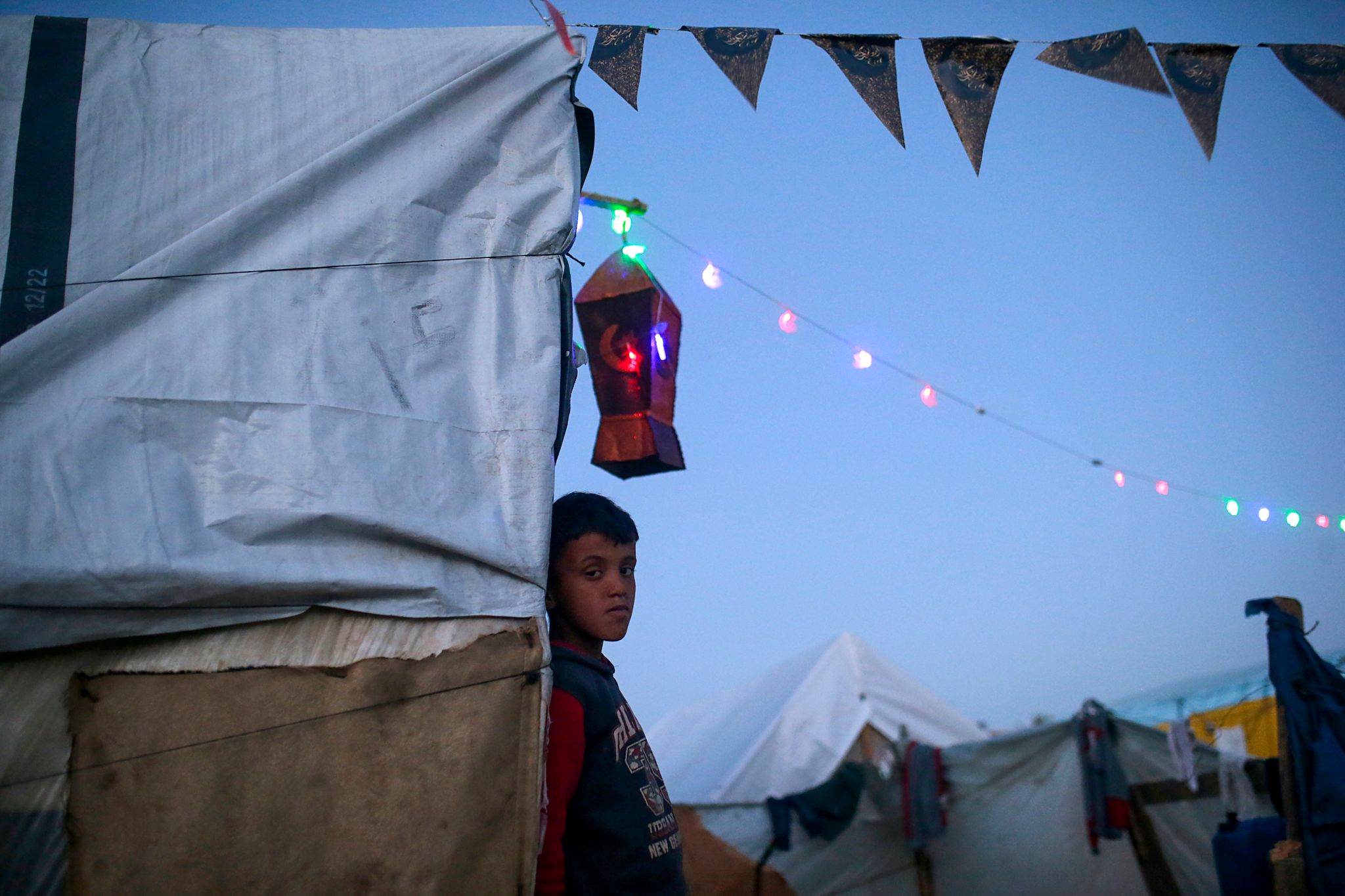 歐新社 / 達志影像null加薩居民以燈籠裝飾暫居的帳篷。