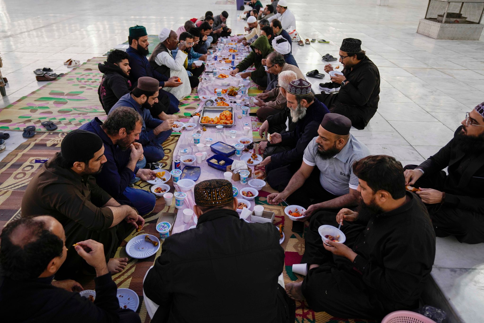 美聯社 / 達志影像null齋戒月的第一天,伊拉克的清真寺中,許多穆斯林正共同享用著開齋飯。