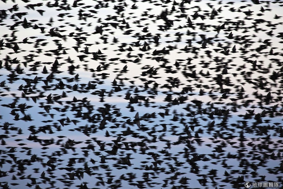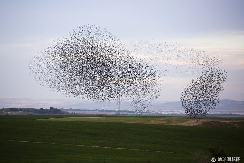 編註:根據《維基百科》,群行行為(Swarm behavior)是指一群實體聚集在一起兜圈或朝特定方向行動,在昆蟲、鳥類、魚類、水生動物、人與細菌身上都會出現這種集體動物行為,而「murmuration」這個字更特別指涉鳥類的群行。