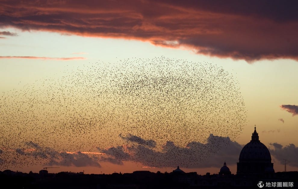 路透社梵諦岡夕陽中的椋鳥。
