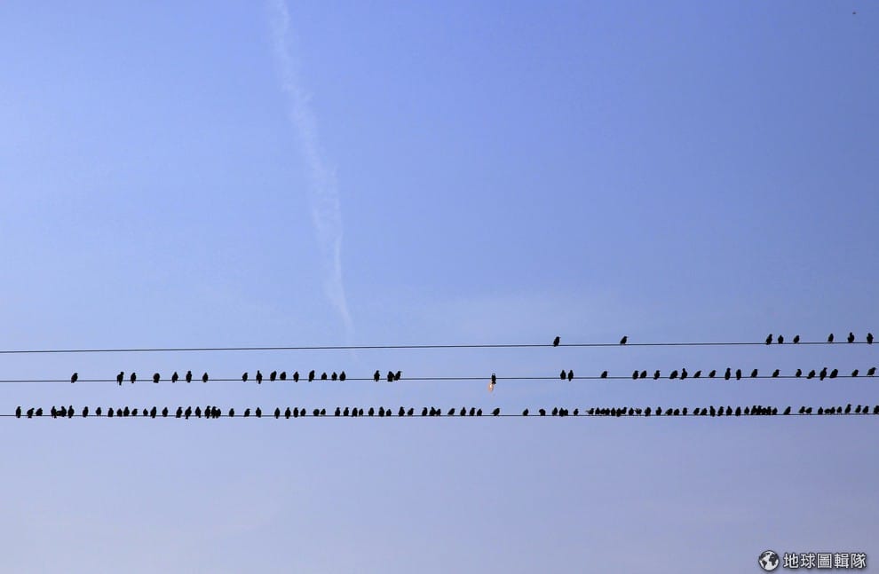 路透社在電話線上休息的椋鳥們。