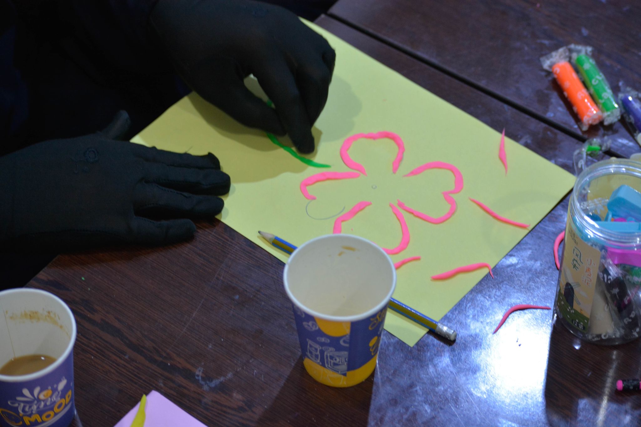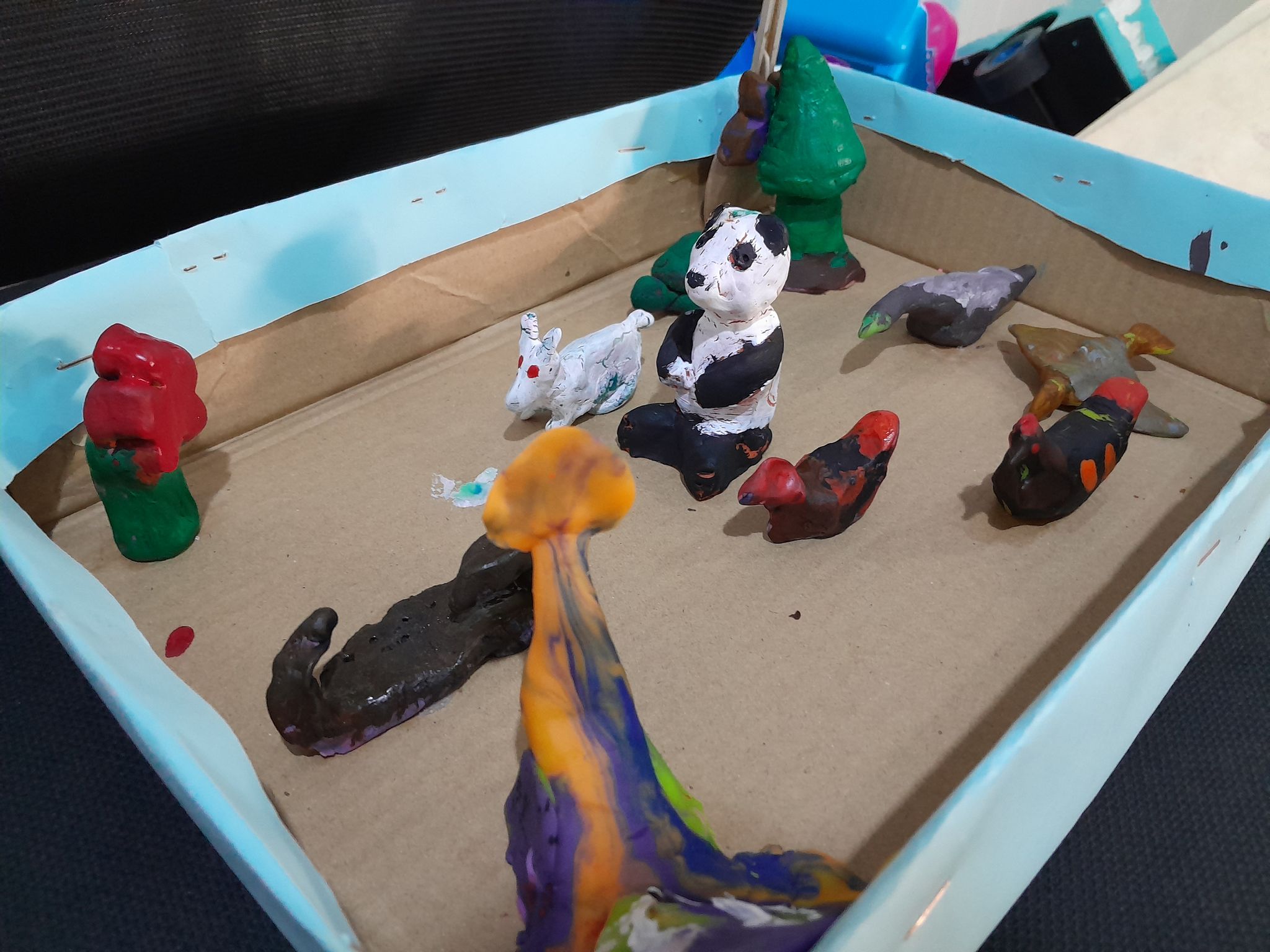 霍爾營地裡,無國界醫生心理健康診所的人體工學療法的一種方式。一群青少年用黏土打造動物園。照片攝於2023年12月13日。 ©MSF