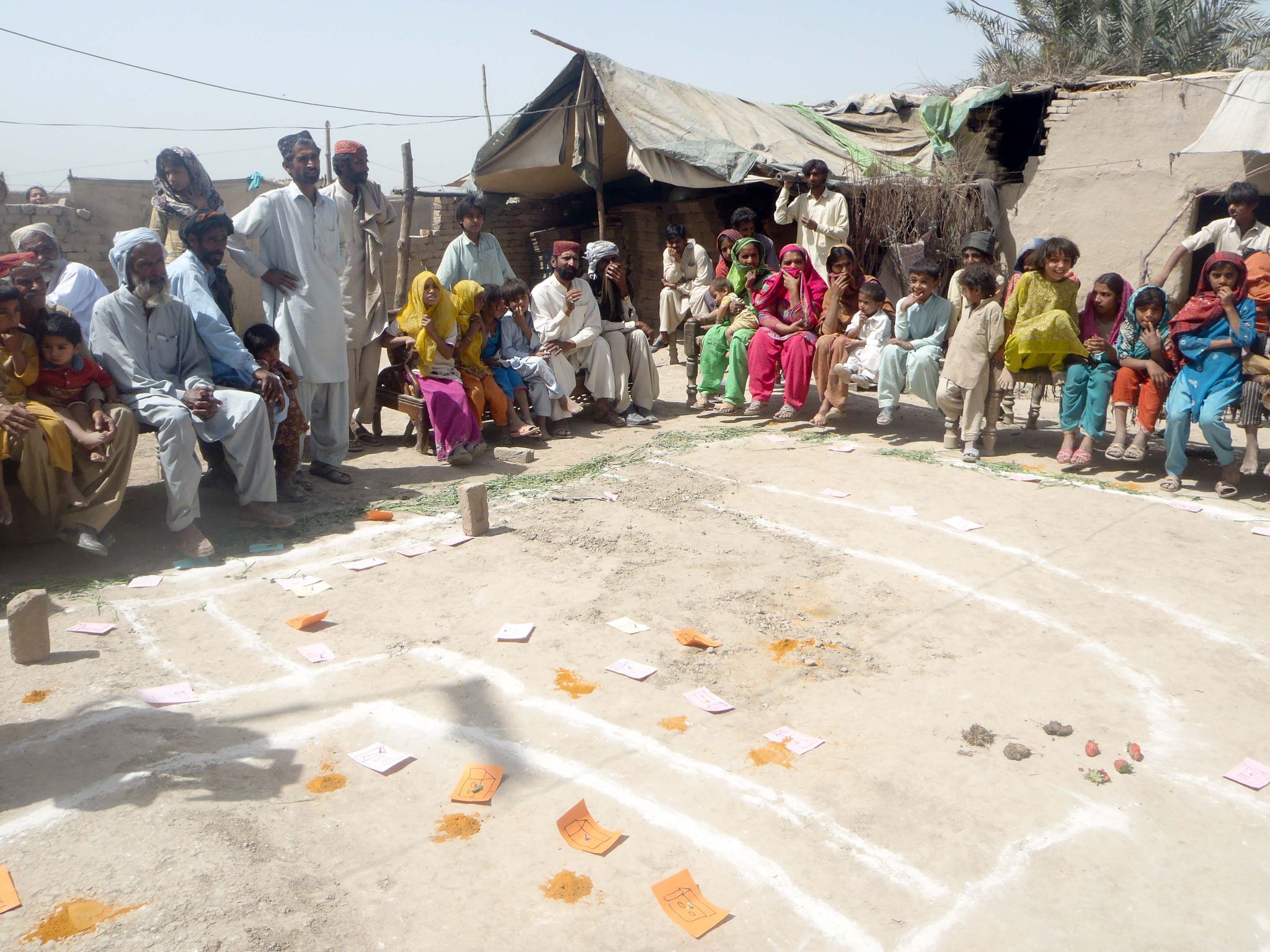 「社區領導全面衛生」方案中,村長會帶領居民一同畫出社區地圖,標示出目前村落中的廁所。