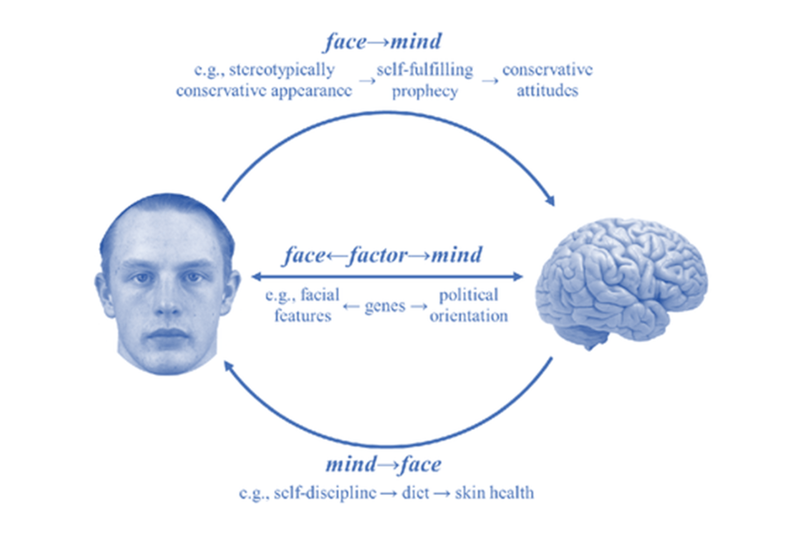 科學家發現,透過AI分析,可以從長相預測一個人的政治傾向;他們並列出三種長相與大腦可能互相影響的因果路徑。