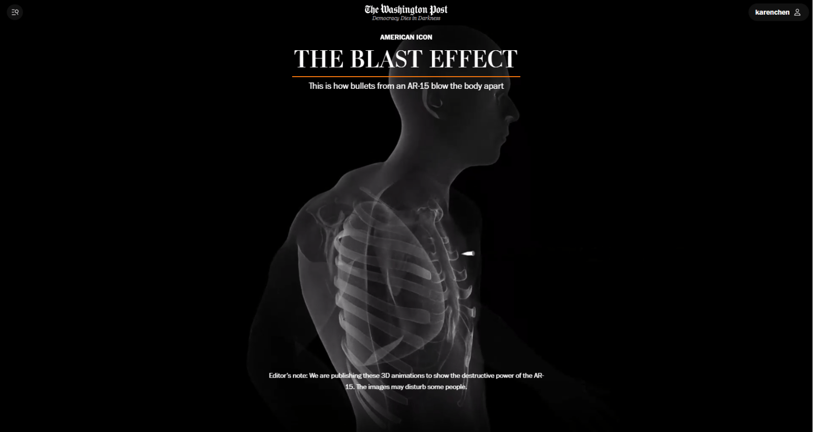 網友 City Bureau、Invisible Institute《華盛頓郵報》打造沉浸式的閱讀體驗,帶領讀者直面槍枝帶來的危險性與威脅。