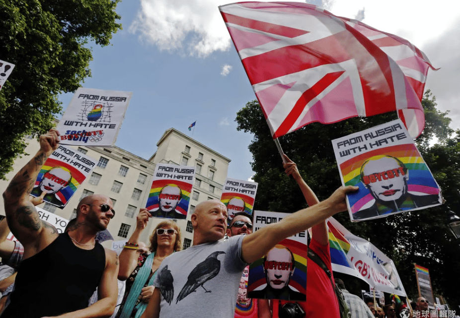 網友ru.wikipedia照為2013年英國同志團體參加抗議活動,抗議俄國通過反同法。