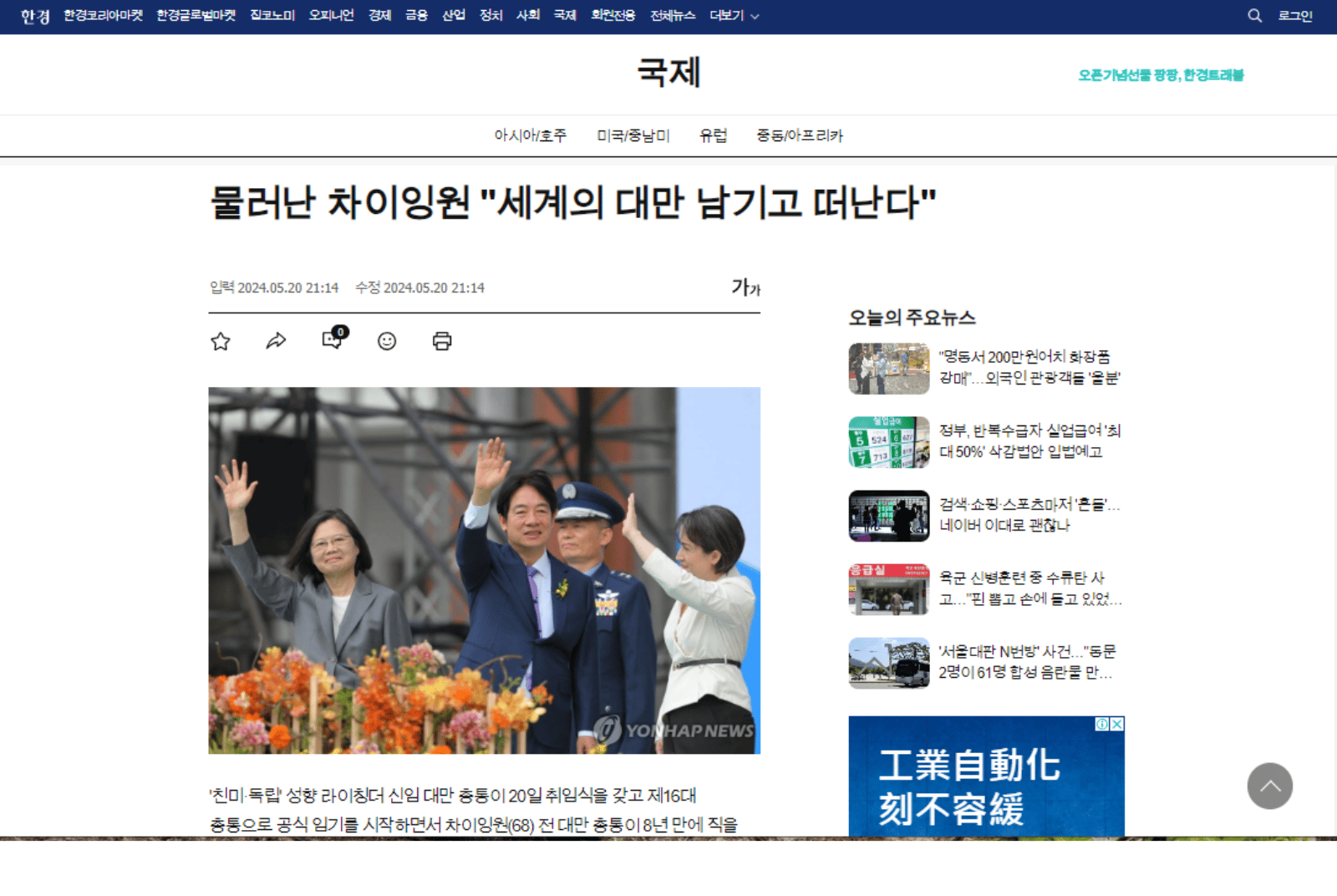 韓國《韓國經濟新聞》|蔡英文卸任 「我將留下世界的台灣」