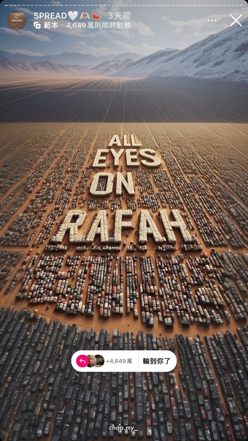 ▲網友以真實的拉法照片,配上「All eyes on Rafah」的文字。