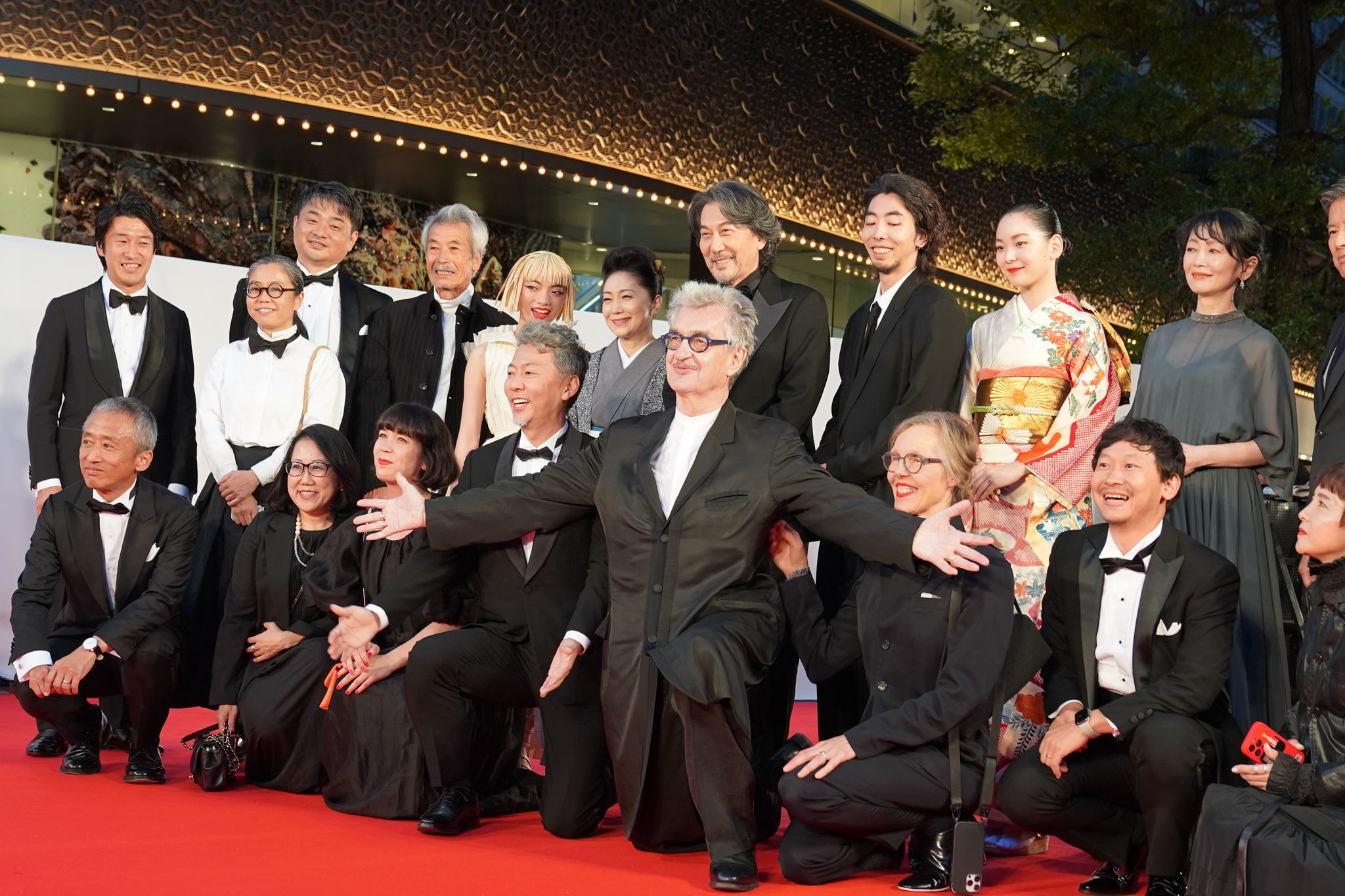 圖為文溫德斯與《我的完美日常》電影劇組,參加2023東京國際影展開幕片。