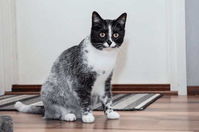 這些貓胸前的毛色是白色,乍看,跟燕尾服貓(Tuxedo cats),或是被台灣稱之為賓士貓的黑白雙色貓極為相像,但細看其中,可以發現牠們的毛色不是非黑即白,而是從根部的黑色逐漸變白的漸進色。