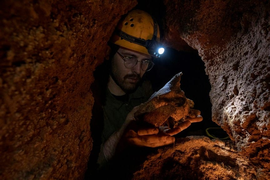 齊格勒描述,他們必須穿戴完整的洞穴探險裝備,配戴好安全帽、手電筒,在有限的空間中,仔細清理每一塊化石上的泥土與灰塵,一一拍照記錄、打包後,再小心翼翼地運回,「這是一個非常具有挑戰性的過程。」