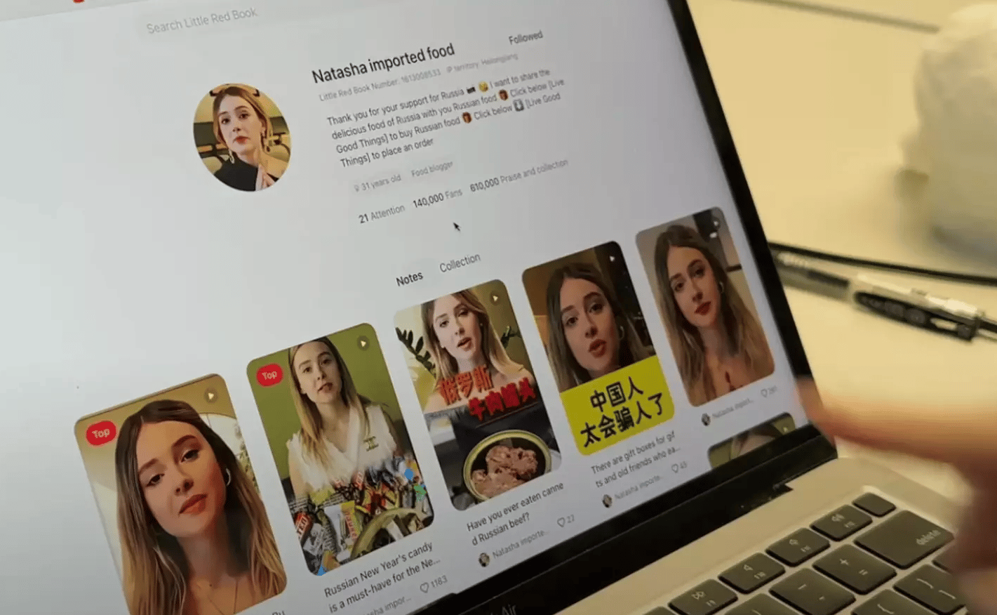 洛伊克不只發現一個帳號盜用了她的臉,當她翻遍Bilibili、小紅書、抖音等中國社群媒體,一共發現有35個帳號使用她的臉宣揚中國與俄羅斯,追蹤人數從1000人到15萬人不等,共計發布超過4900支影片。