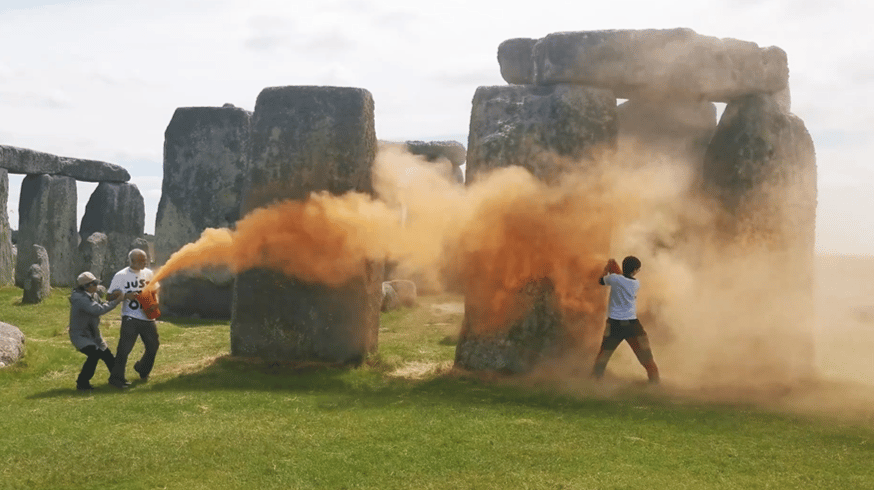 JUST IN: Environmental protesters sprayed what appeared to be orange powder paint across part of Britain's Stonehenge.Read more: https://t.co/kRNbQykqS4 pic.twitter.com/NsgmX7d38p