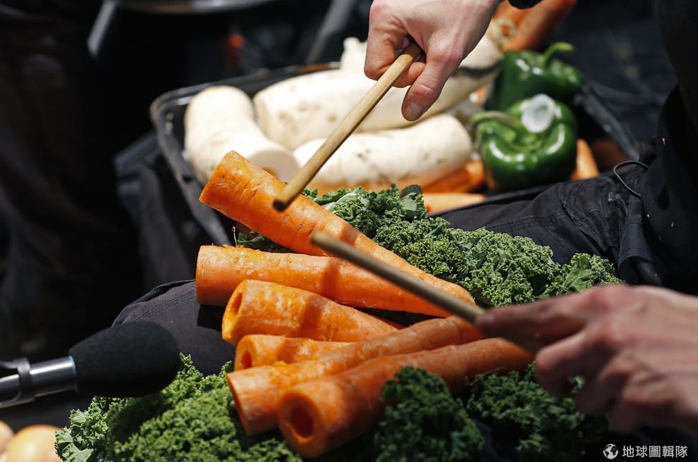 路透社蔬菜交響樂團與各式各樣的蔬菜樂器。