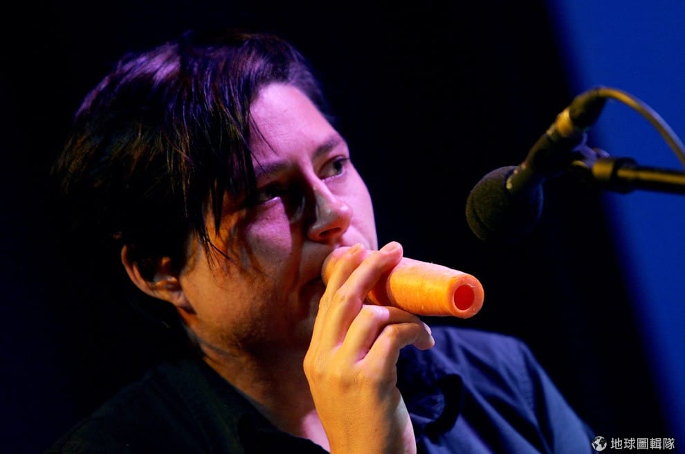 路透社樂團成員蓋特瑪耶(Susanna Gartmaye)敲打挖空的胡蘿蔔。