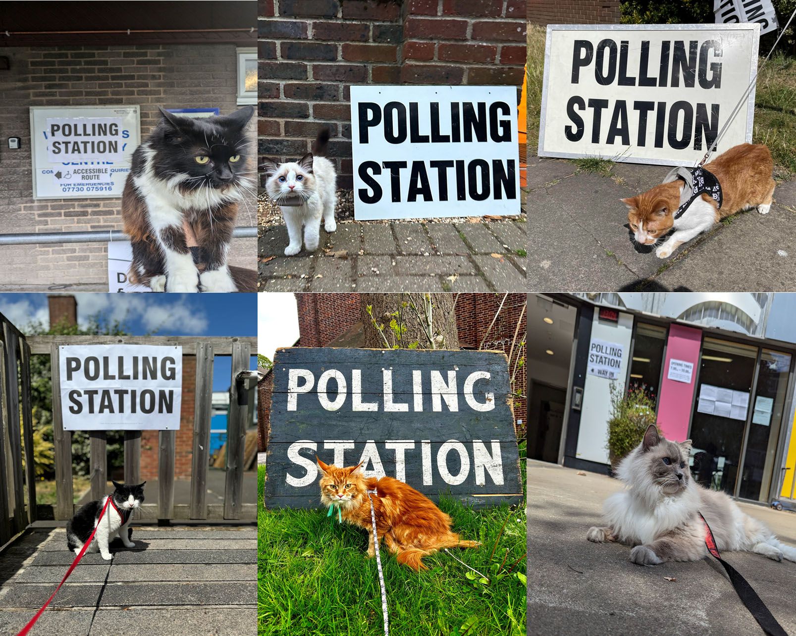 但不光只有狗,也有許多選民會帶自家的貓、鸚鵡出門投票,當然,騎馬去投票、拍下「投票站的馬兒」也成了英國大選的另類風景。