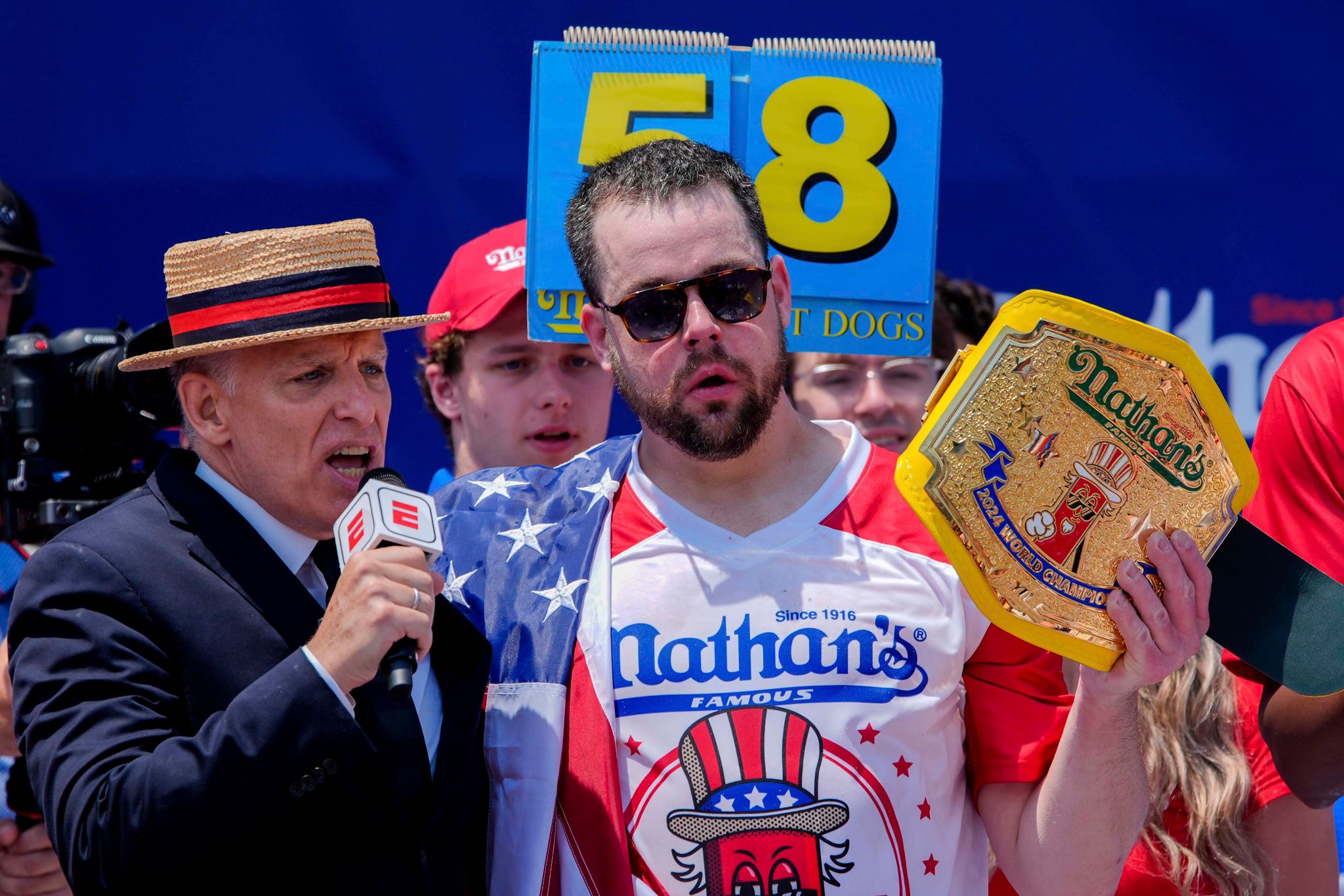 今年納森吃熱狗大賽的男子組冠軍,由年僅26歲的派崔克貝托萊蒂(Patrick Bertoletti)首度拿下。