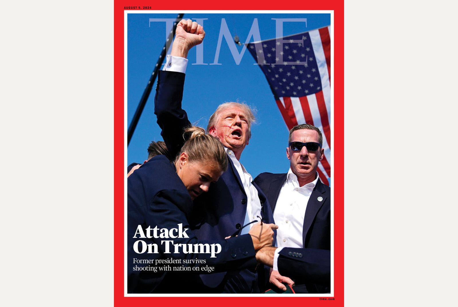 攝影師艾文.弗奇(Evan Vucci)於此時衝向講台前方,拍下這幅畫面,隨即在媒體、社群上廣為流傳。