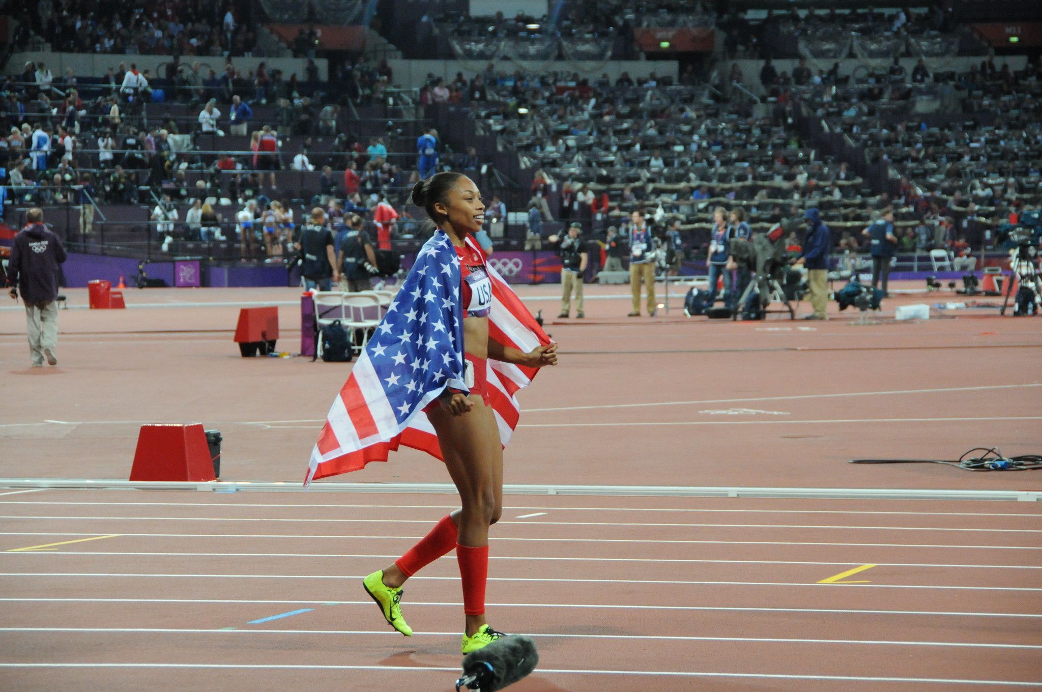 圖為艾麗森菲利克斯於2012年倫敦奧運400公尺接力賽中,以40.82秒的成績跑出史上第三快的成績。