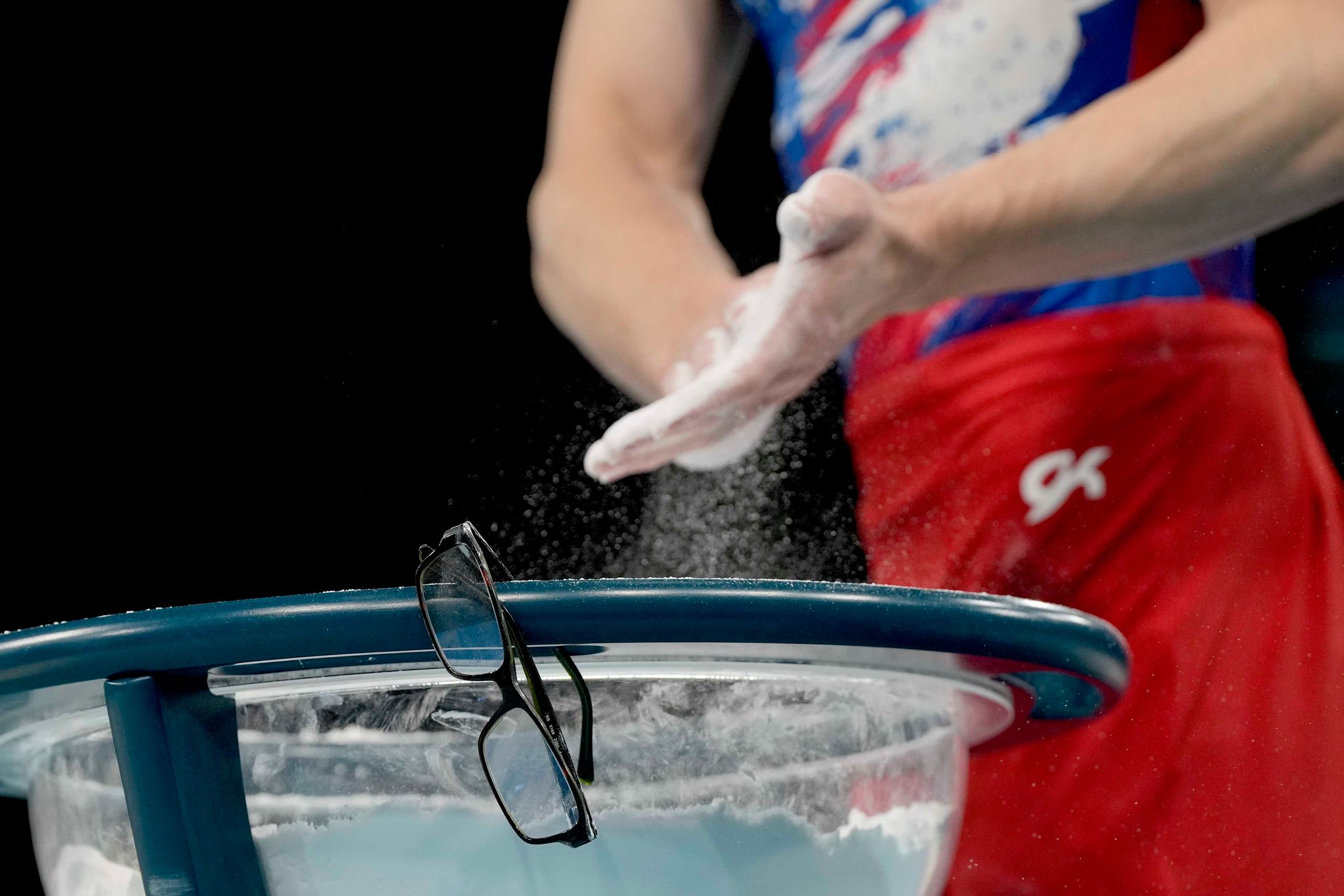不過,當輪到他上場時,他就會拿下眼鏡,在鞍馬上大展身手。他也在今年奧運中為美國隊拿下男子鞍馬項目的銅牌。