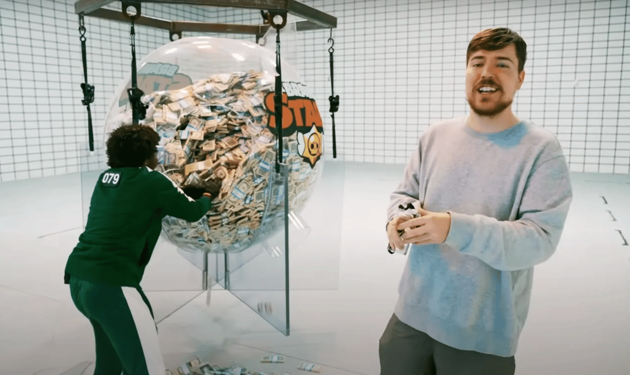 MrBeast完美示範了如何用「金錢」吸引觀眾的目光。不是在送錢,就是在送錢的路上,也成為MrBeast頻道影片一貫的企劃主題:最後一個離開的人、最後一個放手的人、最後一個被找到的人,就可以得到上萬元美金;或是在沙漠、水底、冰塊裡等極端環境中連續待上24小時;甚至是砸重本,蓋一座真實版《巧克力冒險工廠》以及《魷魚遊戲》的生存遊戲。