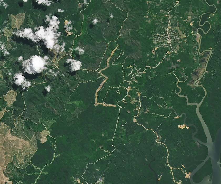 網友NASA Earth2022年4月和2024年2月,努山塔拉的前後空拍對比,可以明顯看到開發的痕跡。