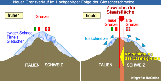 網友Fabrice Villard阿爾卑斯山區的地形樣貌,決定了義大利與瑞士的國界,由於山區最高峰地區通常都被積雪覆蓋,邊界設定也是基於積雪地貌而定。但隨著位於瑞士境內的馬特洪峰沿線的冰川快速融化,這兩國準備重新劃定部分國界。