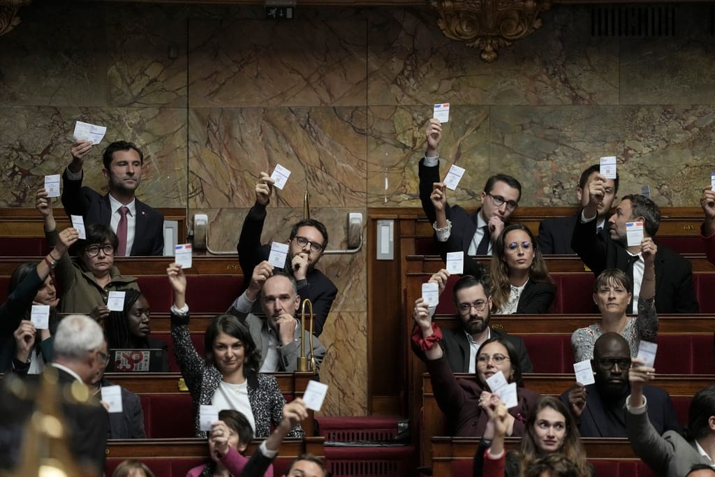 巴尼耶進行施政報告期間,許多左派人民陣線議員高舉投票證,表示抗議。