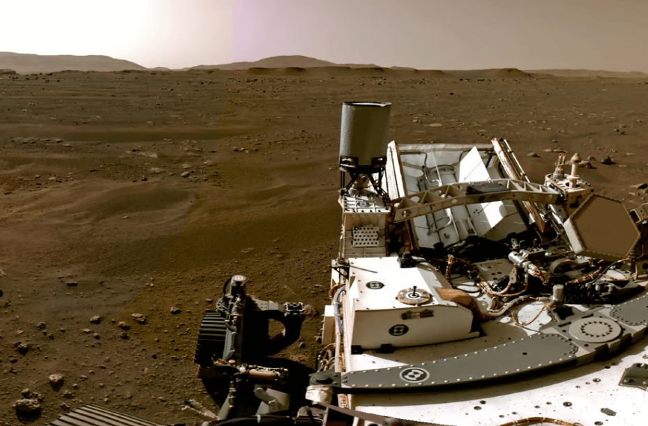 本照攝於今年2月20日,為NASA火星探測車毅力號(Perseverance)的導航相機(Navcams)所拍攝的火星全景圖的一部份。