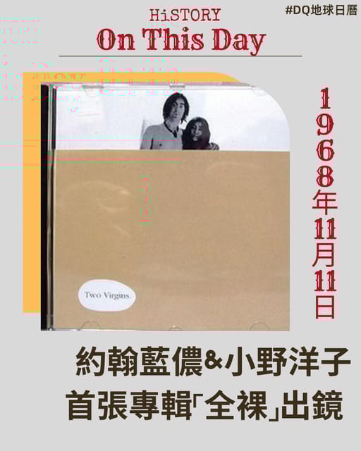 音樂史上最具話題性的Couple,莫過於披頭四主唱 #約翰藍儂 和 藝術家 #小野洋子。1968年11月11日,約翰藍儂和小野洋子,發行首張共同創作的專輯<Unfinished Music No. 1: Two Virgins>,封面是兩人全裸的正面照片,唱片行不得不加上牛皮封套販售。