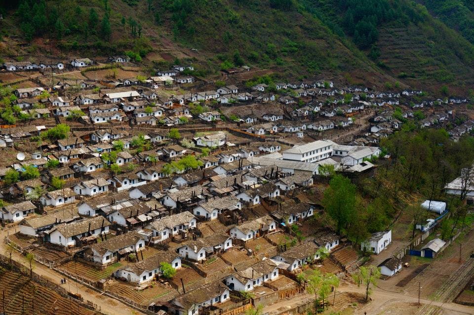 圖由DQ編輯團隊提供。由集安市的雲峰水庫,眺望底下的北韓村莊。