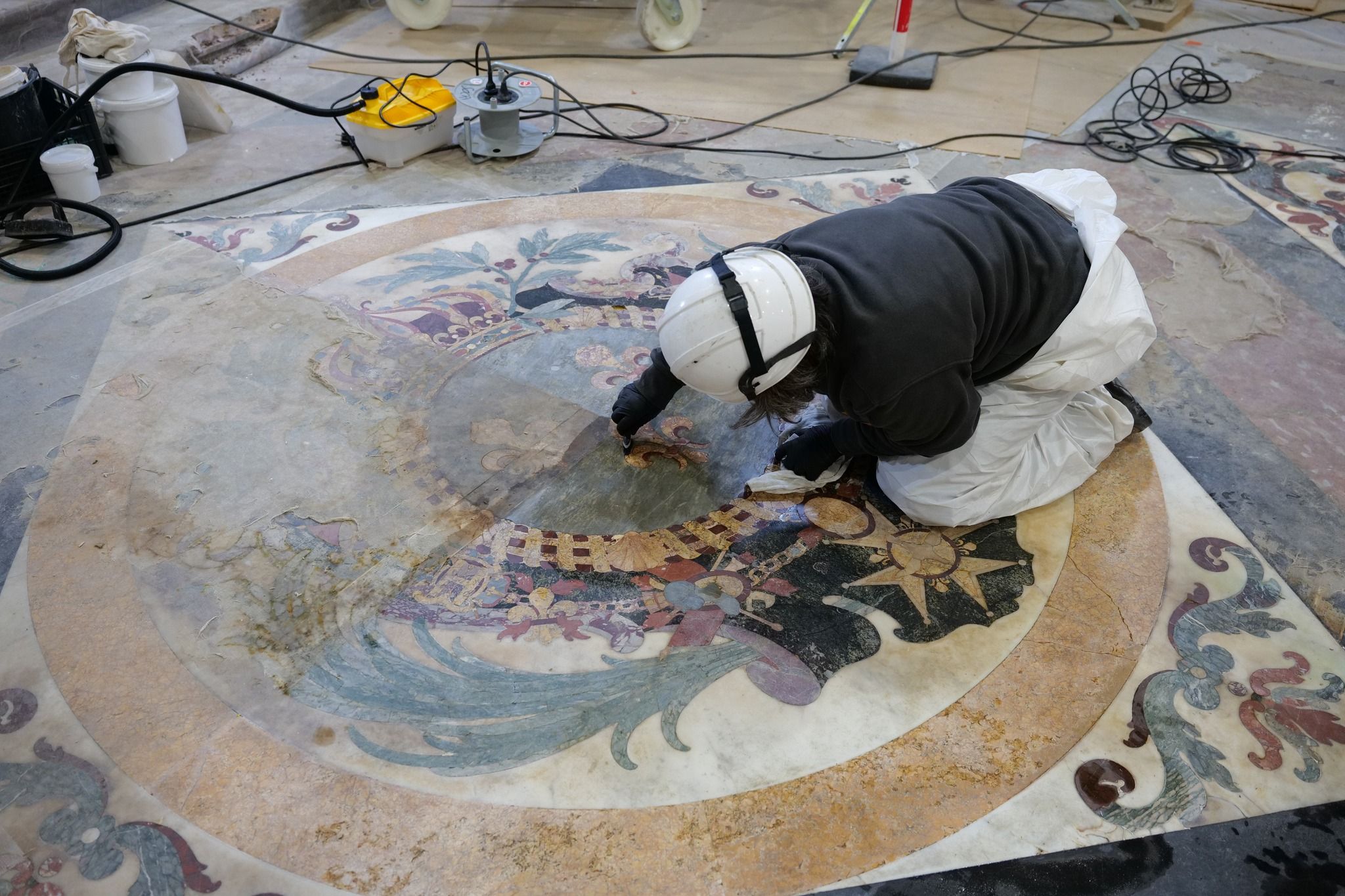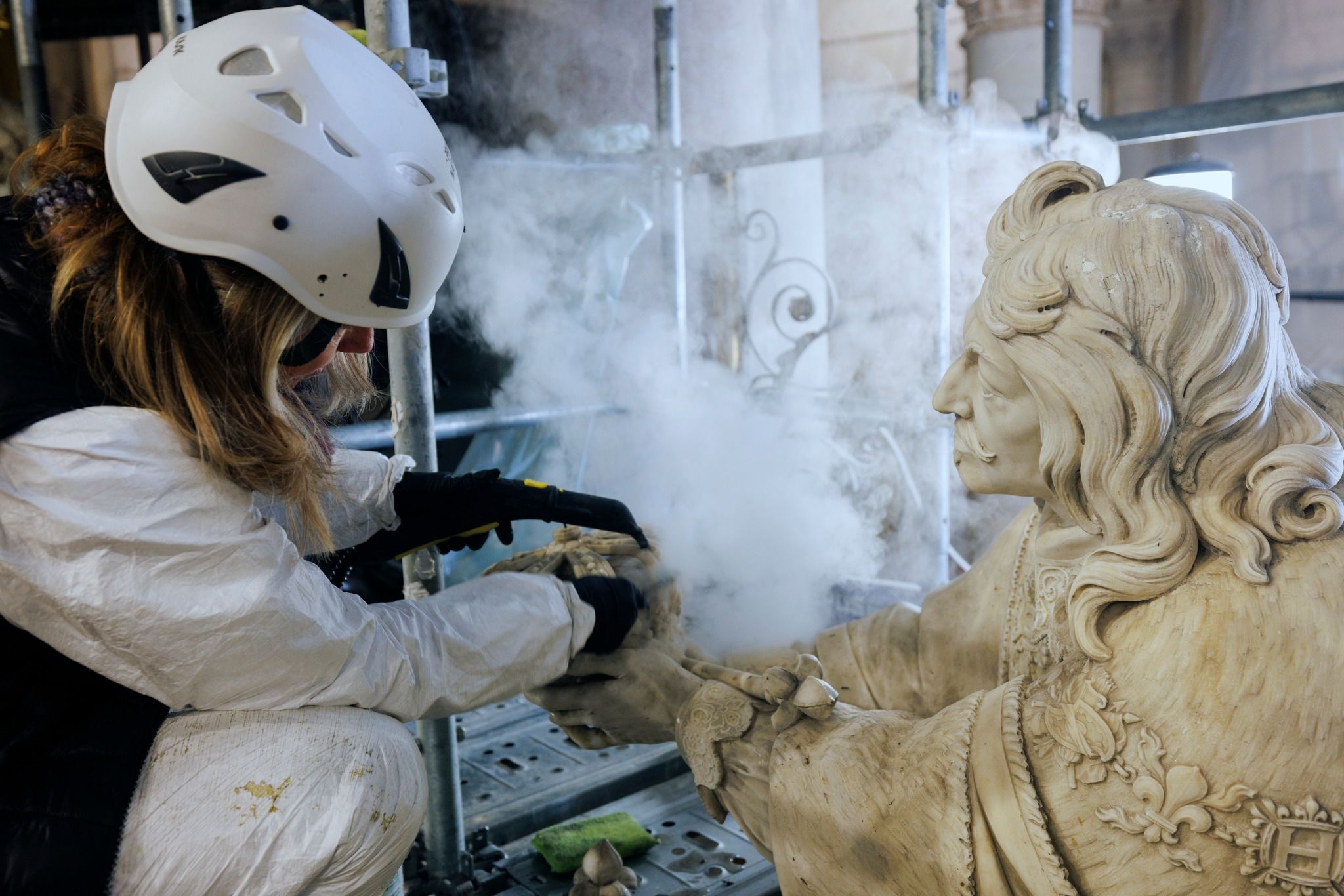 網友Rebâtir Notre-Dame de Paris教堂中的雕像、壁畫,都經過修復人員的細心修補。