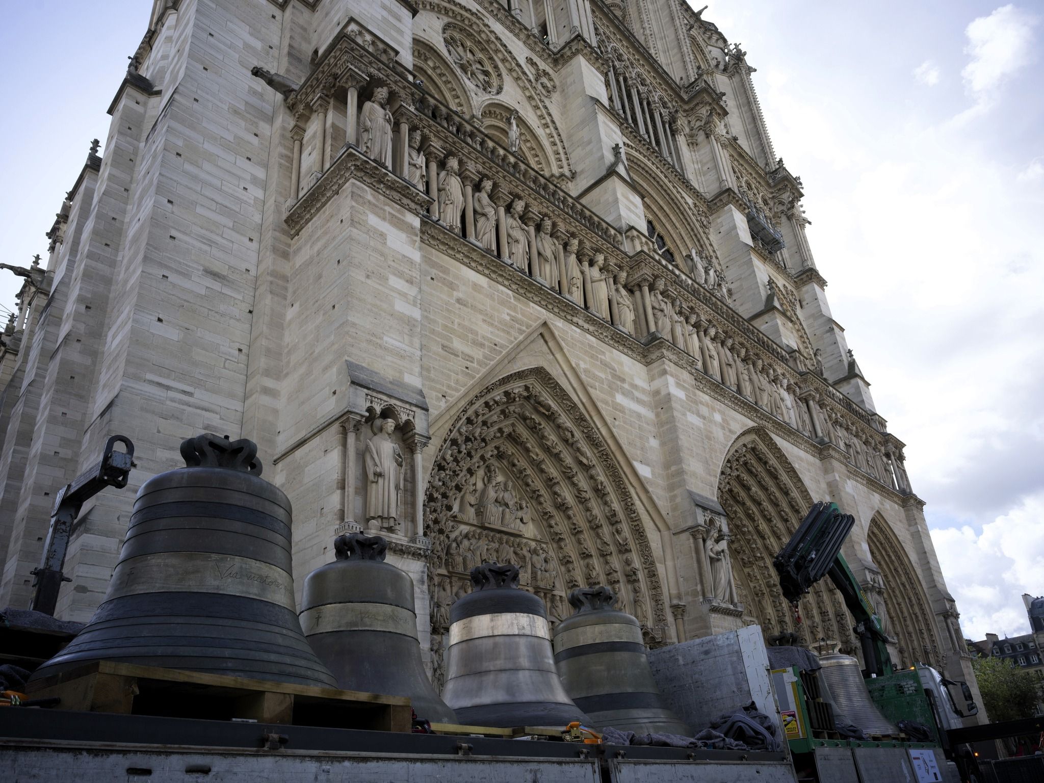 9月12日,8口經修復、重建的大鐘,接受巴黎聖母院大都會大教堂總主教杜馬斯(Olivier Ribadeau Dumas)的祝禱儀式。