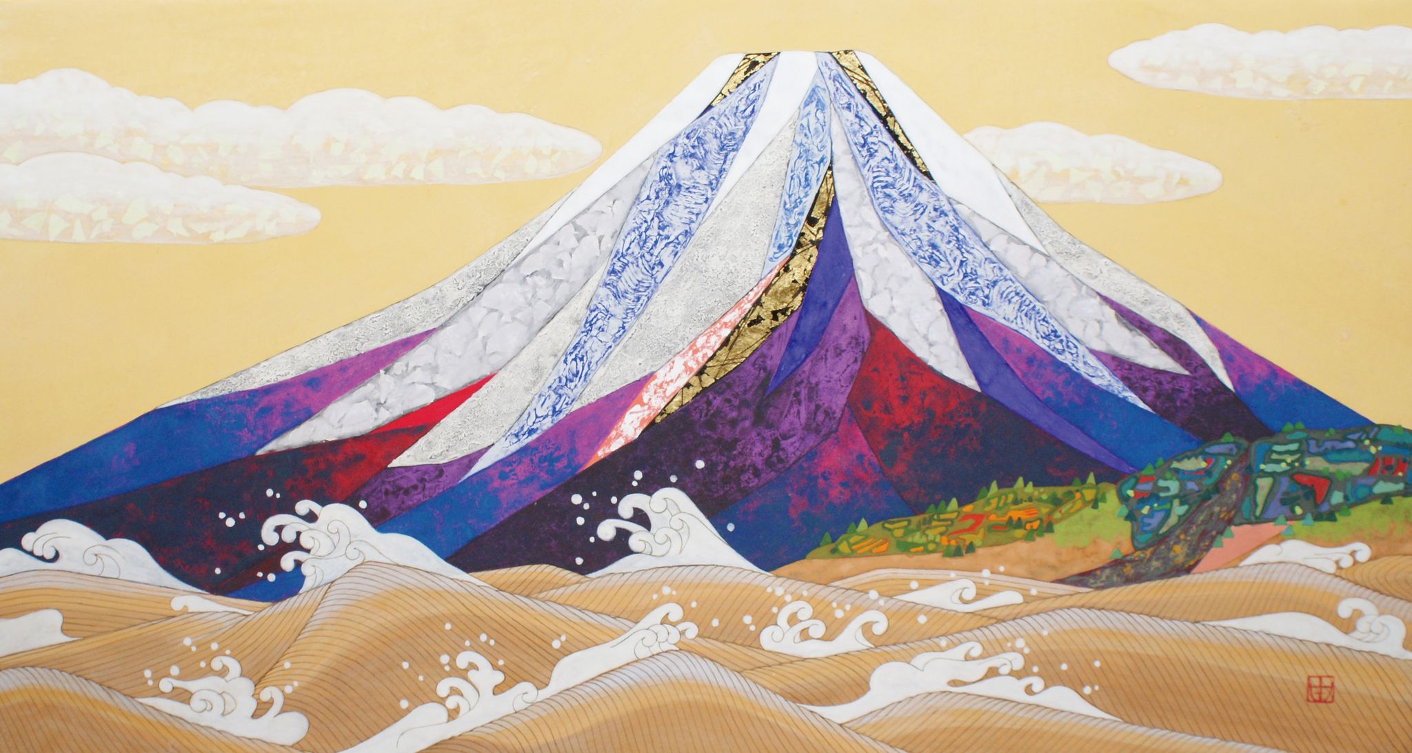 村越由子(Yuko Murakoshi)《富嶽波濤圖》(Mt. Fuji with Waves)40×75cm, 岩彩、金箔、和紙(Mineral pigment, Gold leaf, Washi paper)2022