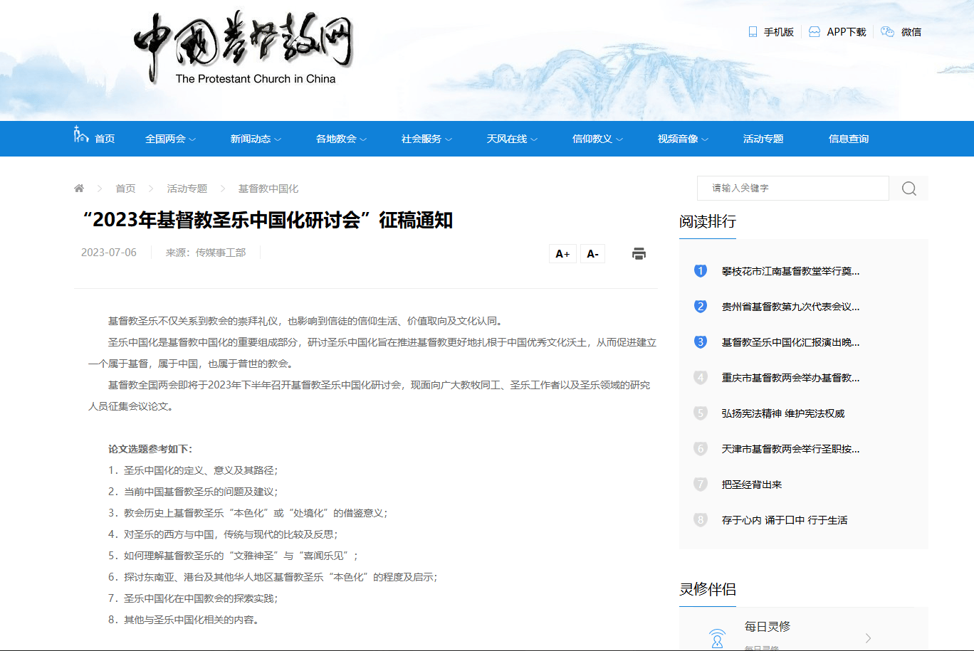 2024年,記者在合肥一間官方管治下的基督教會牆外看到一張告示,該教會開班教授以中國樂器如嗩吶等演奏聖樂,作為「宗教中國化」的實踐之一。