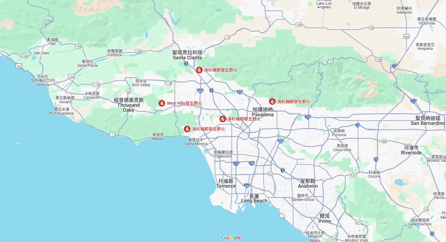 洛杉磯太平洋斷崖(Pacific Palisades)社區爆發首起大火,一開始只是灌木火災,但據加州林業與消防保護部(Cal Fire)的報告,該火災至週四晚上已經蔓延至19,978英畝。